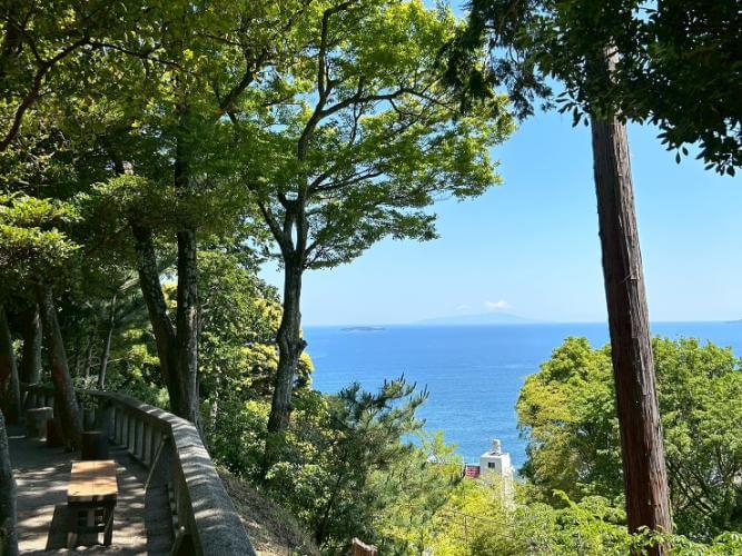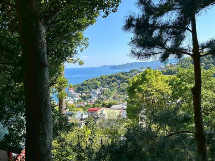 実際に参拝に訪れると、石段を登り切った瞬間に広がる景色が印象的です。立ち止まって振り返ると、熱海の海と街並みが一望でき、写真に収めたくなる光景が広がっています。