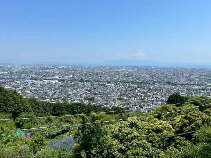 富士山を正面に望む高台にある公園で、梅や桜、アジサイなど四季折々の花が美しく咲き誇ります。展望広場からの眺望は抜群で、特に晴れた日の富士山と駿河湾のコントラストは圧巻。神社から車で約15分ほどの距離にあり、散策や写真撮影にもおすすめです。