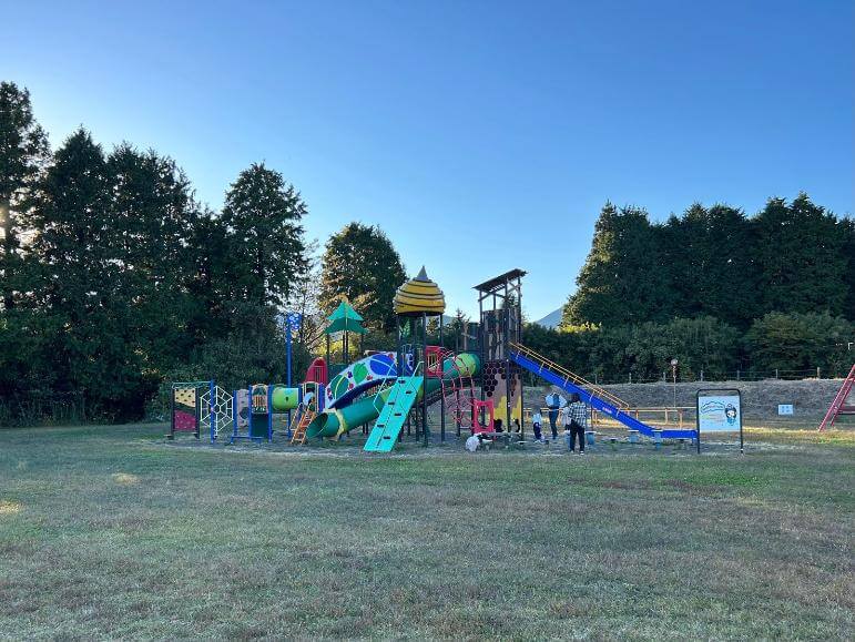 園内には、お子様向けの遊具がまとまった広場や、多目的に利用できる人工芝のスポーツ広場が整備されています。遊具広場では親子で過ごす姿が見られ、スポーツ広場ではグラウンドゴルフやフットサルなどを楽しむことができます。