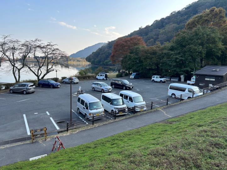主な駐車場としては、湖北側にある湖畔広場横の駐車場(約50台)と、レストハウス側の駐車場(約200台)があり、北側の駐車場は湖畔の散策に、レストハウス側の駐車場はキャンプ場の利用やアクティビティの受付に便利です。駐車場は無料で利用できるため、気軽に立ち寄りやすい点も特徴といえるでしょう。