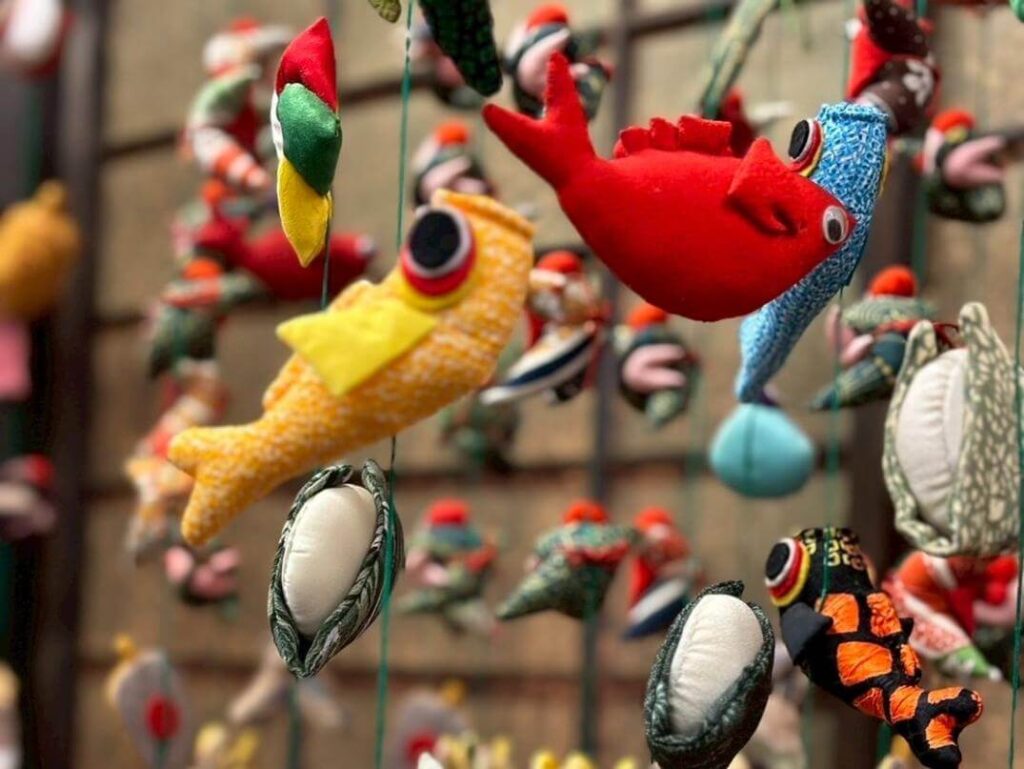 来場者の多くは、多種多様なつるし飾りをカメラに収めようと熱心にシャッターを切っていました。近づいて見てみると、つるし飾り一つひとつが丁寧に作られているのがよくわかります。