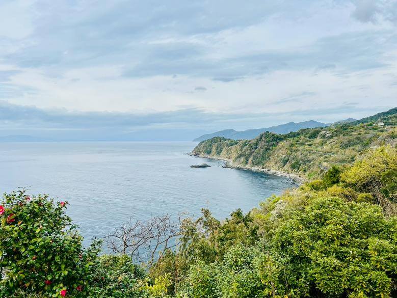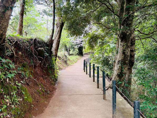 駐車場やバス停到着後は、遊歩道を歩いて展望デッキへ向かいます。坂道や階段が続くものの、距離はそれほど長くありません。緑や海を眺めながら展望デッキを目指せるのがうれしいポイントです。