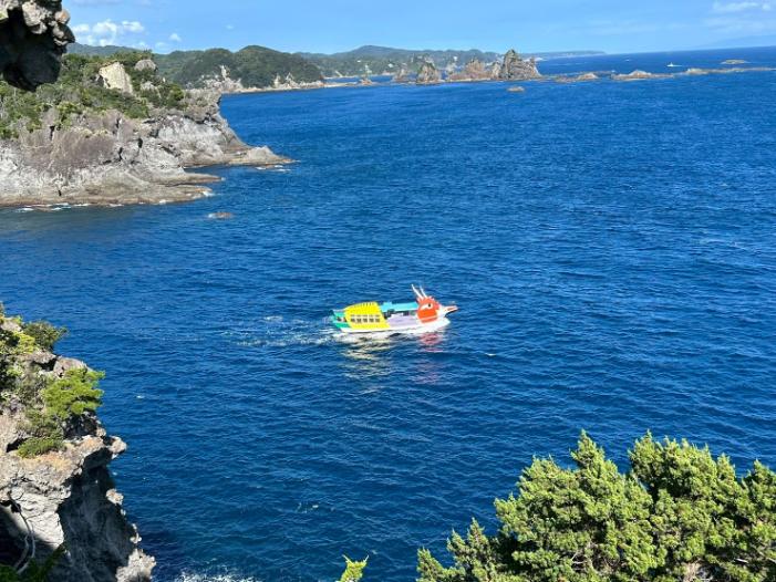 石廊崎岬めぐり遊覧船は、海上から石廊崎周辺の断崖や岩礁を眺められる観光船です。陸上の散策とは異なる視点で岬の地形を楽しめる点が特徴で、断崖の迫力を間近に感じられます。