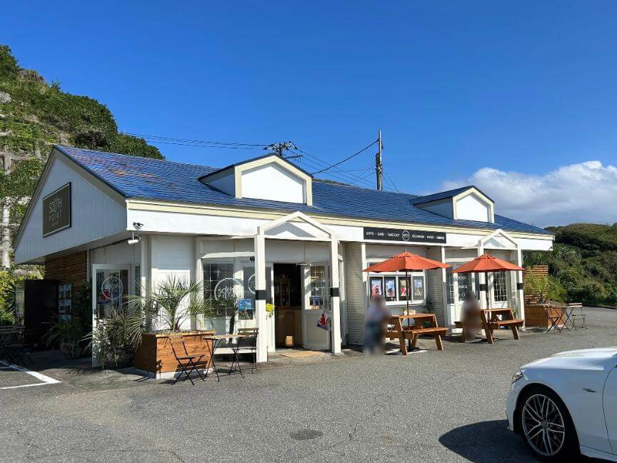 また、あいあい岬には「SOUTH POINT Cafe&Gift(サウスポイント カフェアンドギフト)」というカフェも併設されています。イギリスから移住したご夫婦が営む比較的新しいカフェで、絶景を眺めながら軽食やドリンク、スイーツを楽しめるお店です。