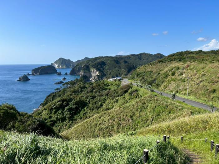 このエリアを訪れる観光客やドライバーに人気の休憩スポットで、島々が点在する海景は、ユウスゲ公園とは異なる迫力があります。