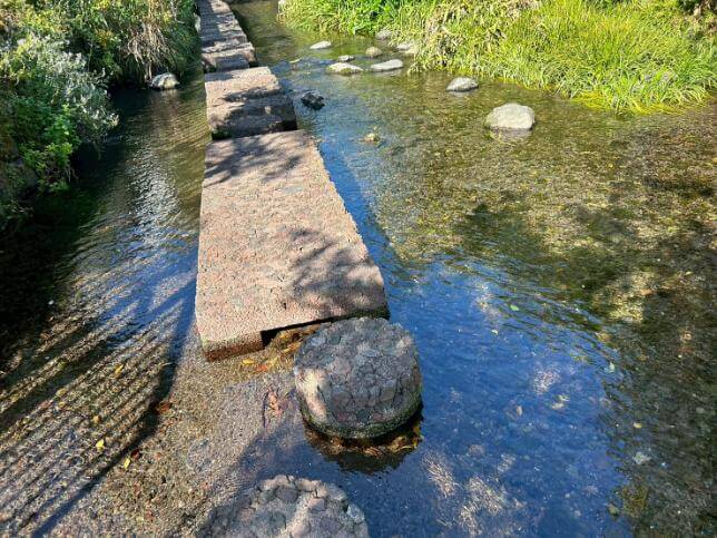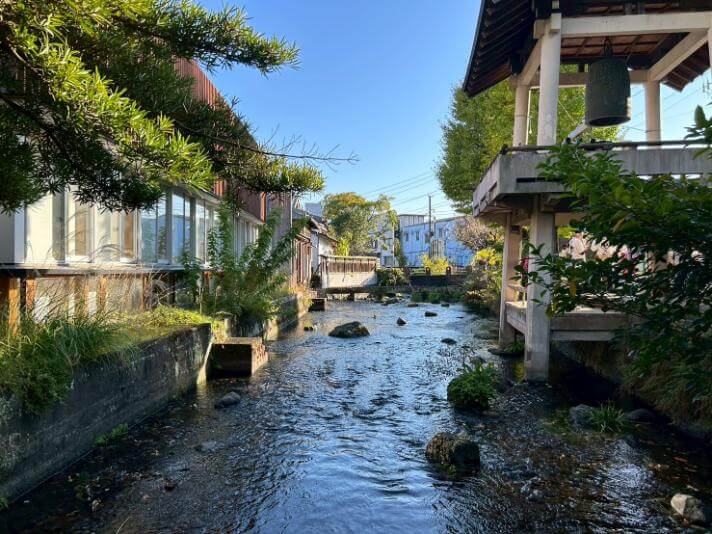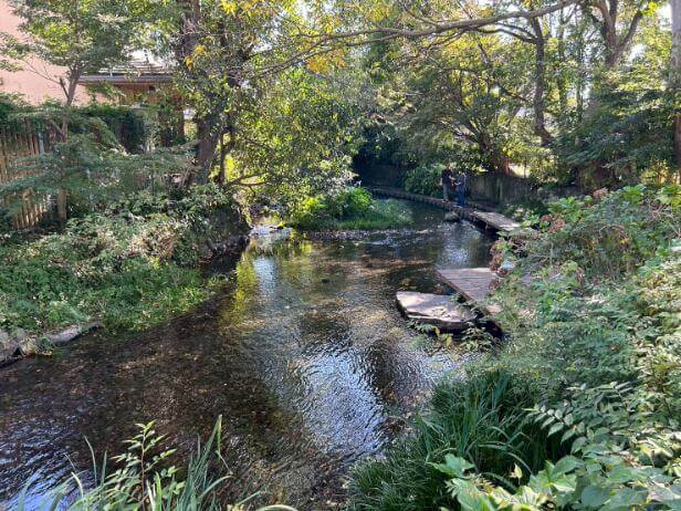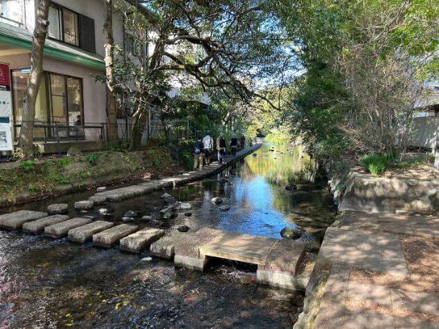 飛び石の感触や水の音が心地よく、自然と街が溶け合う独特の雰囲気を味わえるのが魅力です。