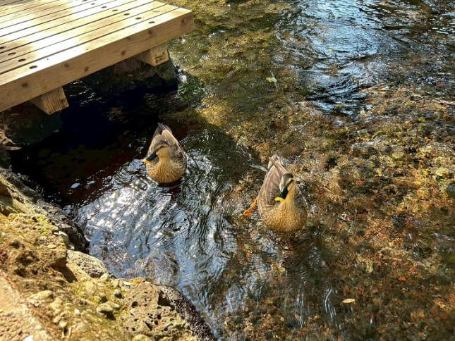 私が訪れたのはホタルのシーズンではなかったため、ホタルの姿は見られませんでしたが、数種類の野鳥やカモは観察できました。清流にゆったりと漂うカモを眺めていると、心まで穏やかな気分になります。