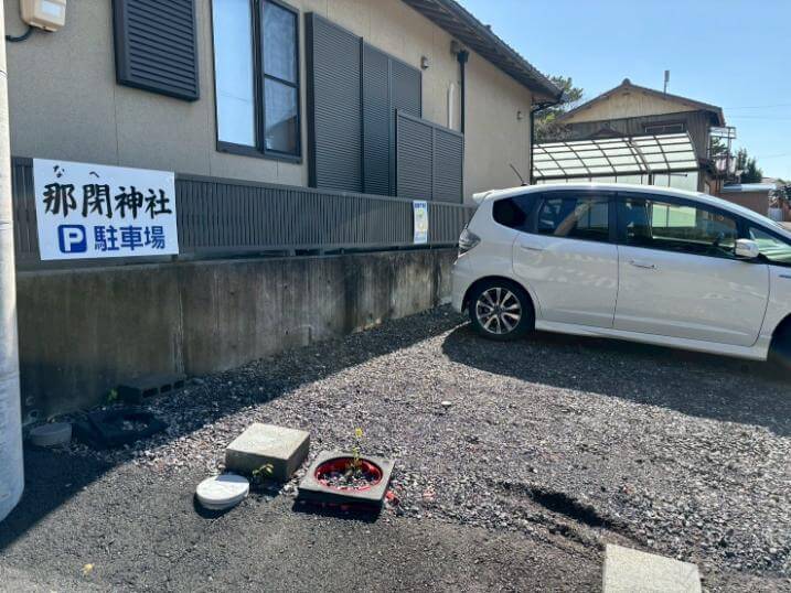 那閉神社の境内には、参拝者用の小規模な駐車場が整備されています。収容台数は3~5台ほどで、料金は無料です。