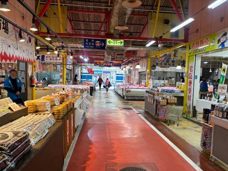 体験コーナーでは干物づくりや試食などが用意されている場合もあり、市場らしい雰囲気を体感できます。